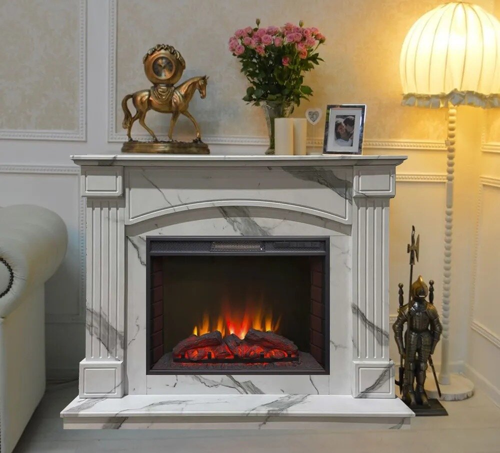 Электрокамин FlameKamin Carolina Lux MR-WT с очагом Sparta 25.5 LED (электрический камин)