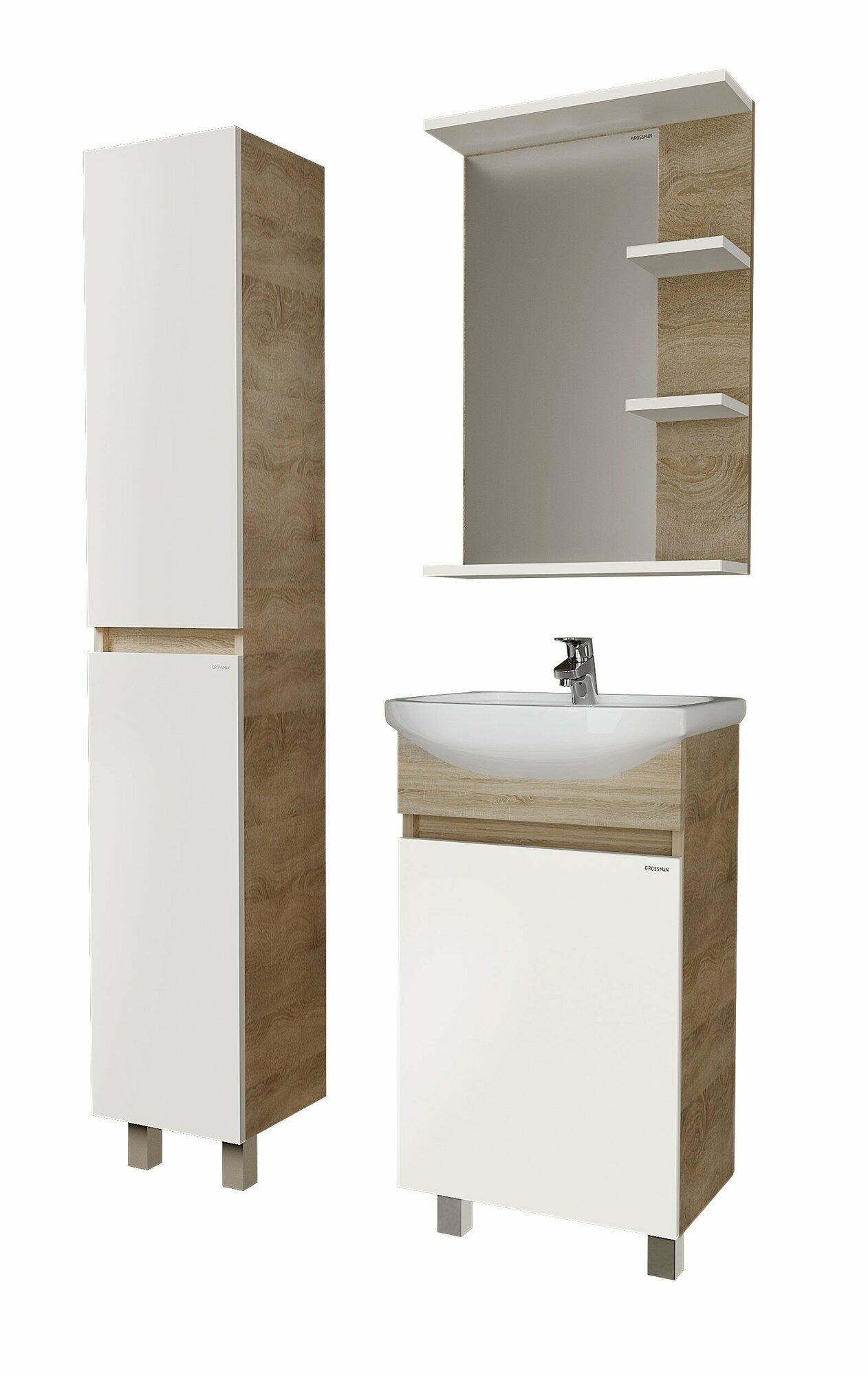 Grossman Тумба под раковину Grossman 104501 Дуб сонома светлая, Белая глянцевая