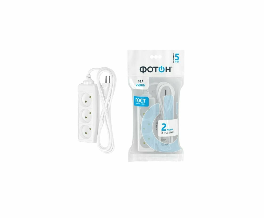 Удлинитель сетевой (фильтр) 3 розетки 2 метра