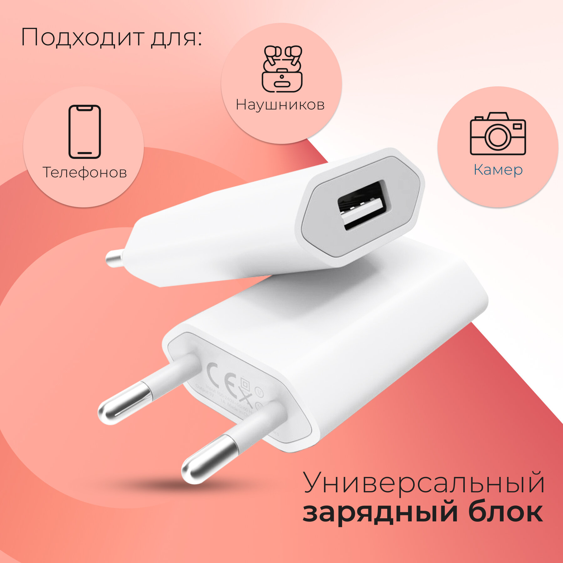 Универсальное сетевое зарядное устройство для телефона USB 1A / Блочек ЗУ адаптер питания сетевой / Блок зарядки Apple iPhone и Samsung