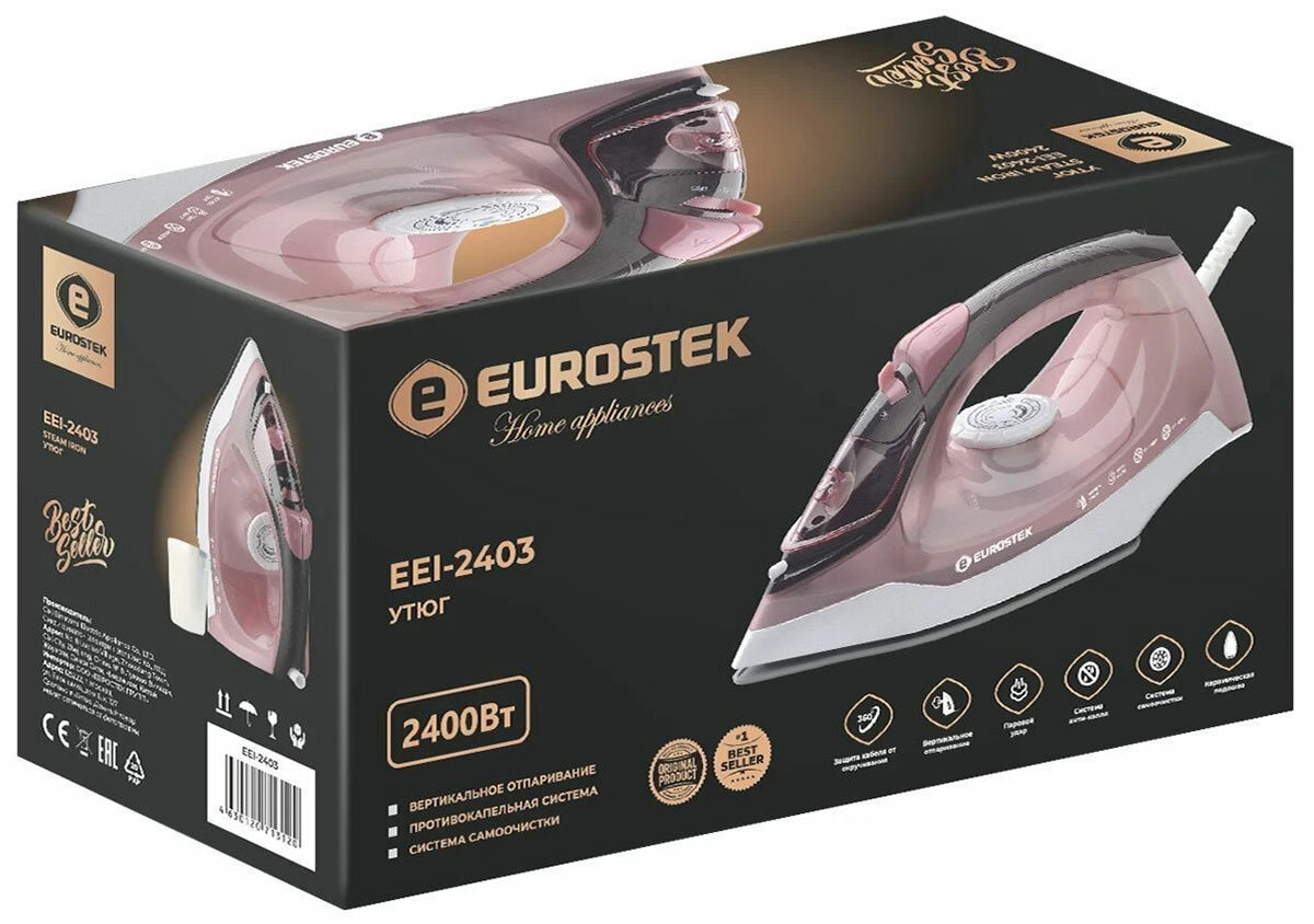 Ниже Вы можете прочитать отзывы на Утюг EUROSTEK EEI-2403 розовый/белый, ознакомится с подробными характеристиками, посмотреть интересные обзоры и фотографии на Утюг EUROSTEK EEI-2403 розовый/белый.