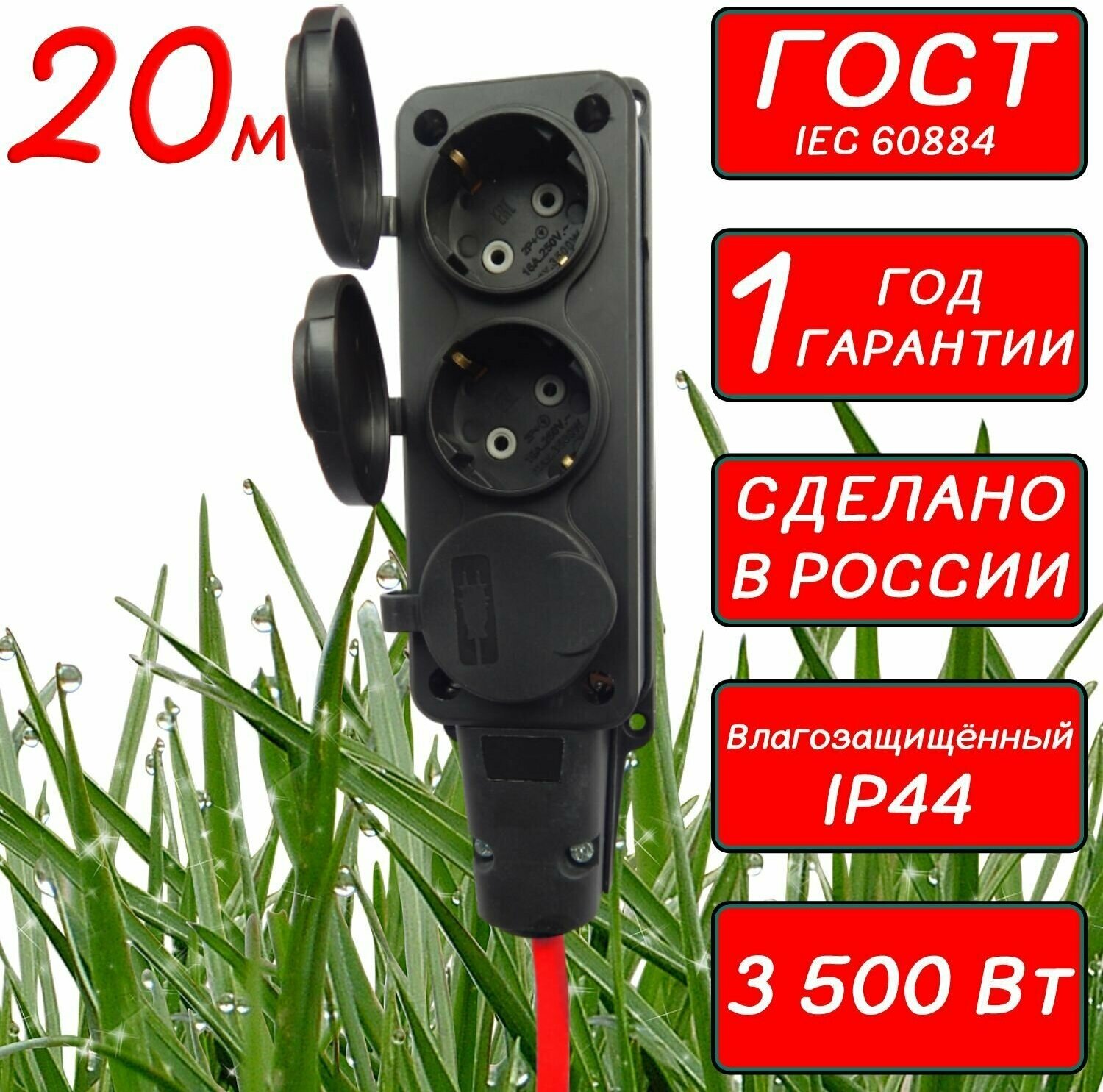 PC-3G-3B-20(IP) Power Cube Удлинитель влагозащищенный IP44, 16А, 3р, 20м, Электрическая мануфактура