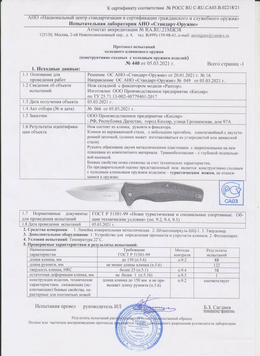Нож складной "Раптор"ручка пластик кизляр 08025 интересное:
