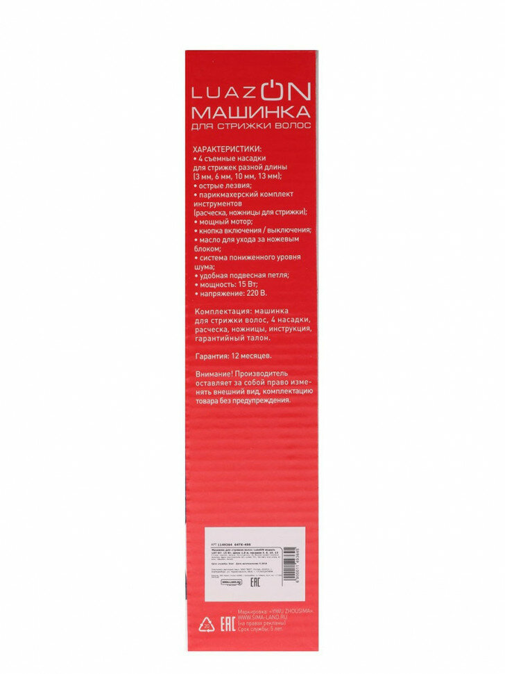 Машинка для стрижки LuazON LST 07 15 Вт шнур 1 8 м насадки 3 6 10 13 мм