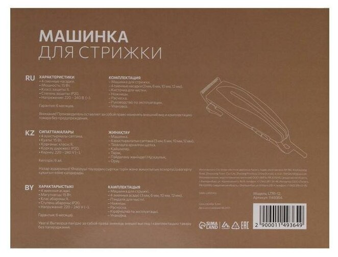 Машинка для стрижки Luazon LTRI-12, 15 Вт, 3/6/10/12 мм, 220 В, серебристая 1149364 интересное: