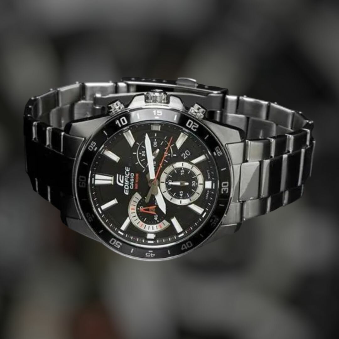 EFR-571DC-1A Casio наручные часы кварцевые WR100 (10 атм) мужские черный отображение числа подсветка стрелок минеральное стекло