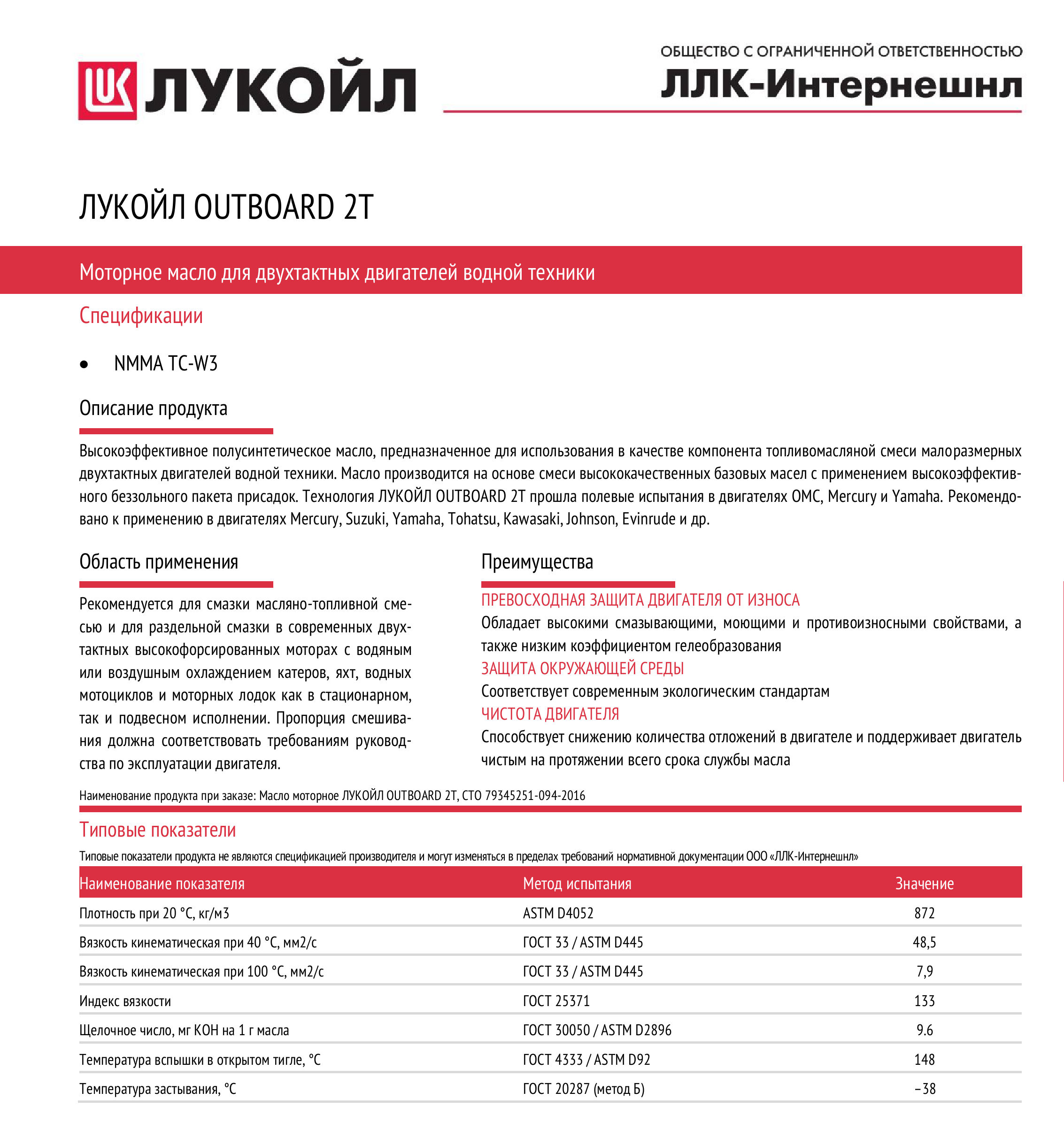 | Допуски OEM | NMMA TC-W3 |