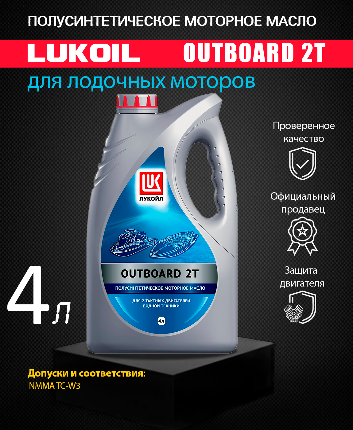 Масло Лукойл Outboard 2Т 4Л Моторное Для 2-Тактных Двигателей (Полусинт) Моторное Масло Для 2-Тактных Двигателей Водной Техни...