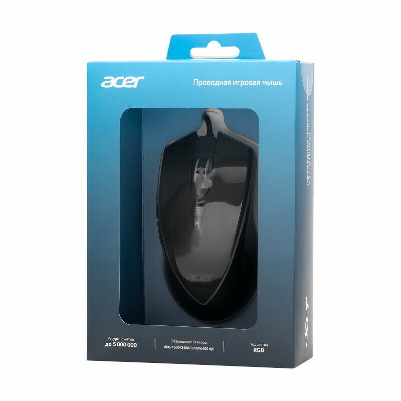 Мышь Acer OMW131, игровая, оптическая, проводная, USB, черный [zl.mceee.015]