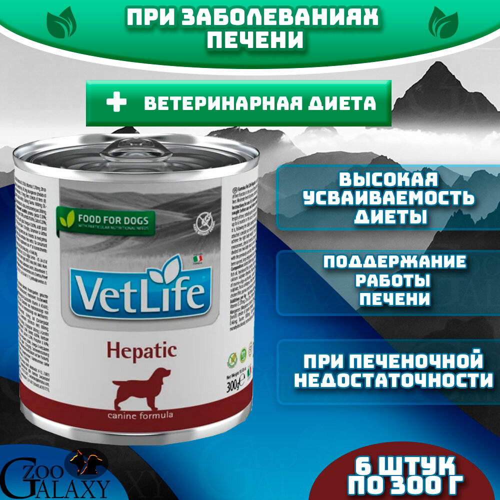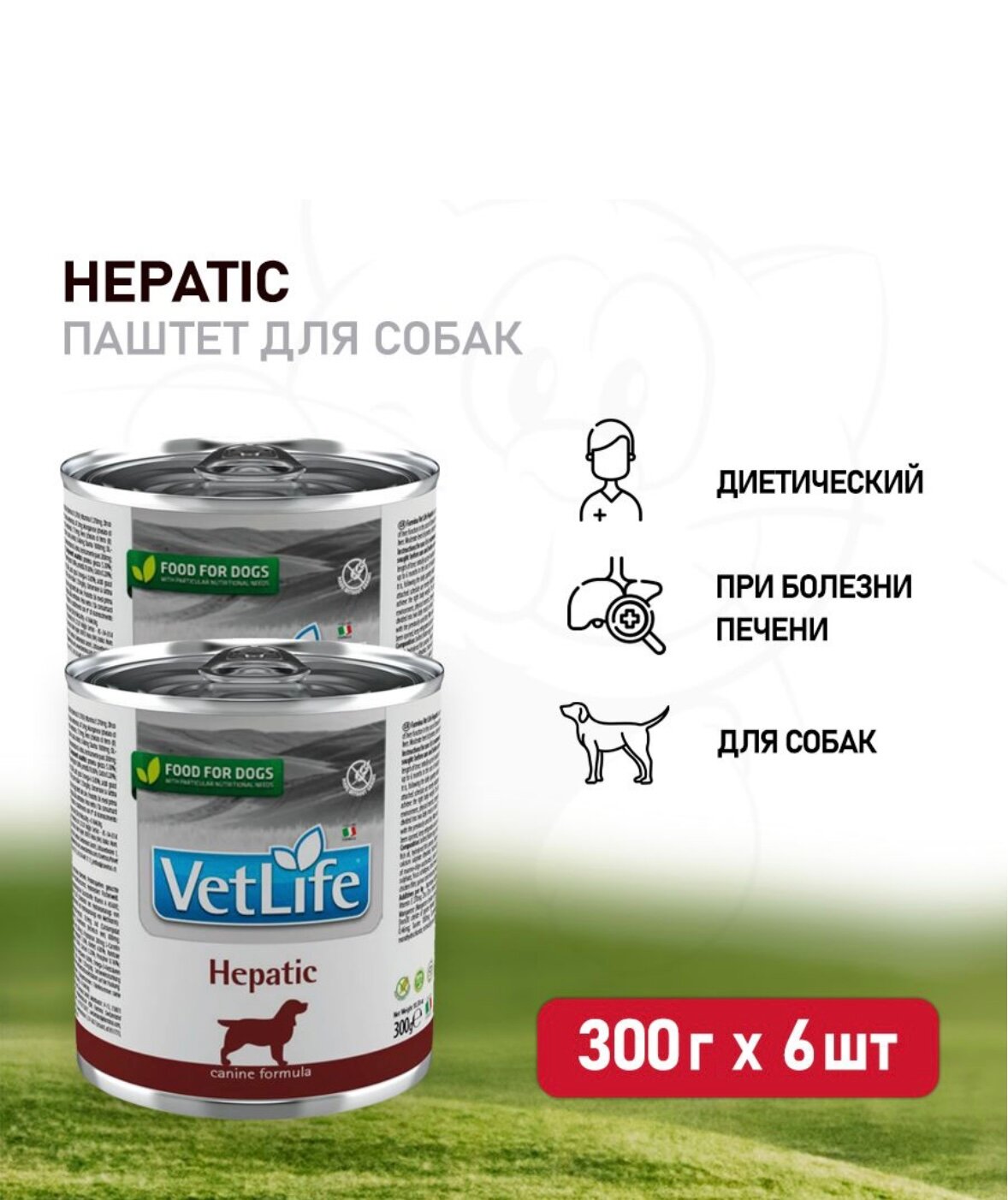Консервы/влажный корм Farmina Vet Life Natural Diet Dog Hepatic/Диета паштет для собак всех пород при заболеваниях печени, (300 гр*6 шт)