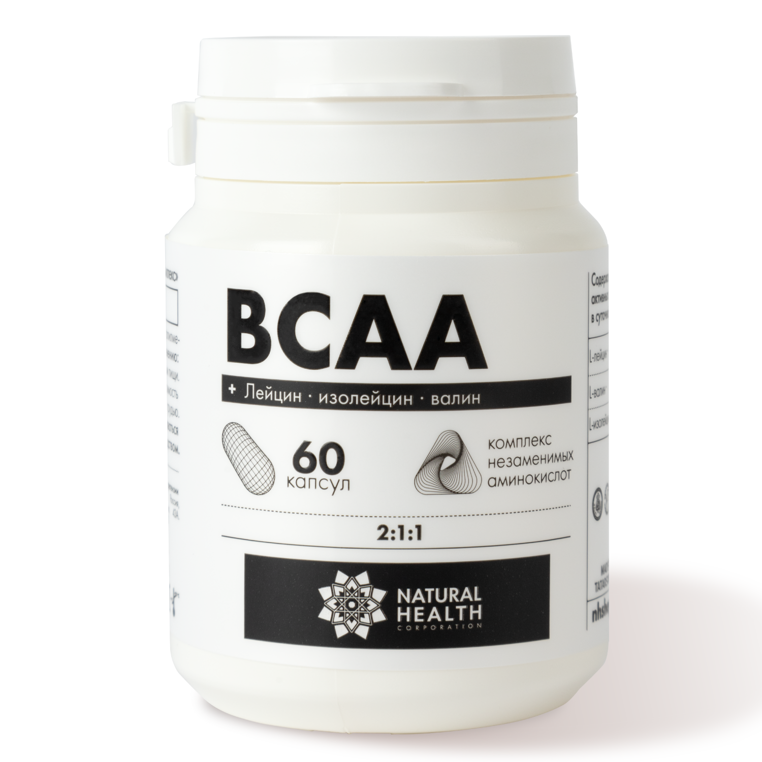 Аминокислоты BCAA 2:1:1 Natural Hеalth в капсулах, для мужчин и женщин, L-лейцин, L-изолейцин, L-валин, 60 капсул