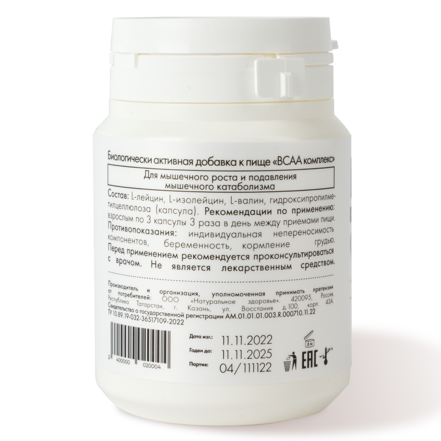 Аминокислоты BCAA 2:1:1 Natural Hеalth в капсулах, для мужчин и женщин, L-лейцин, L-изолейцин, L-валин, 120 капсул