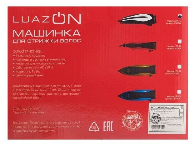 Ниже Вы можете прочитать отзывы на Машинка для стрижки LTRI-12, 15 Вт, 3/6/10/12 мм, 220 В, серебристая, ознакомится с подробными характеристиками, посмотреть интересные обзоры и фотографии на Машинка для стрижки LTRI-12, 15 Вт, 3/6/10/12 мм, 220 В, серебристая.