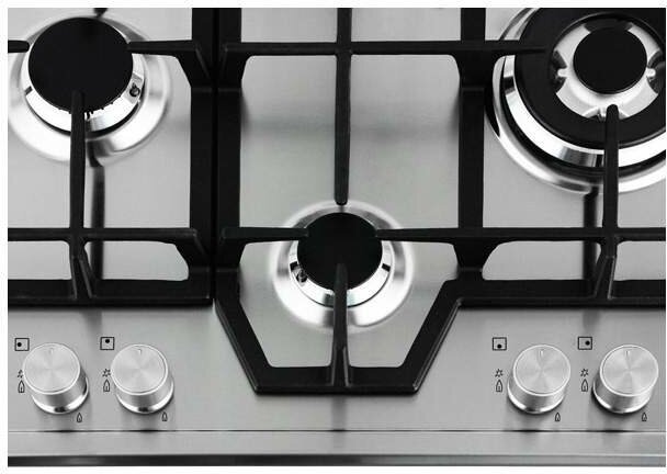 | Плюсы: | удобное расположение конфорок, нержавейка, чугунные решетки, стильный внешний вид |