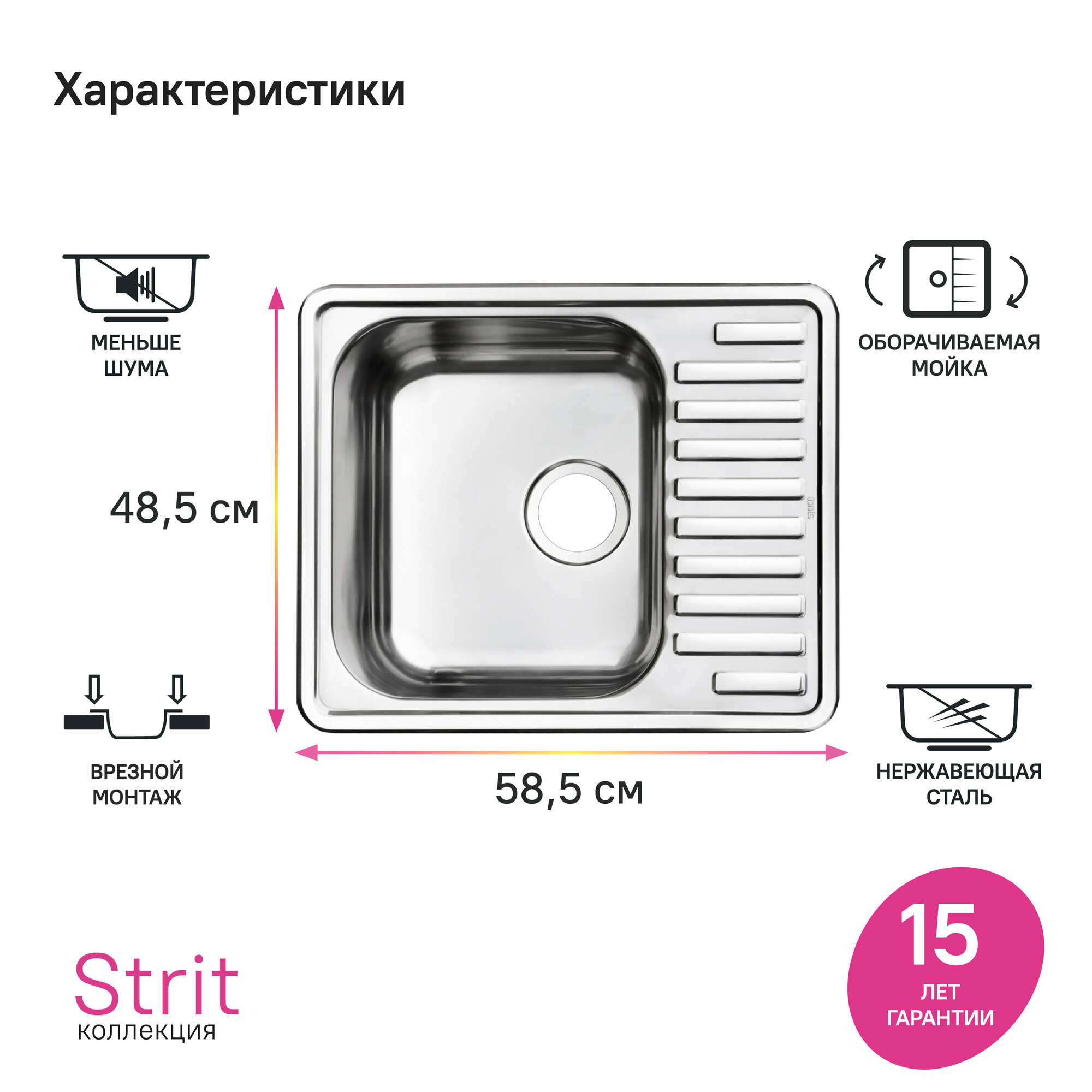 Мойка Iddis нерж сталь STR58SDi77 Strit S 585*485 шелк интересное: