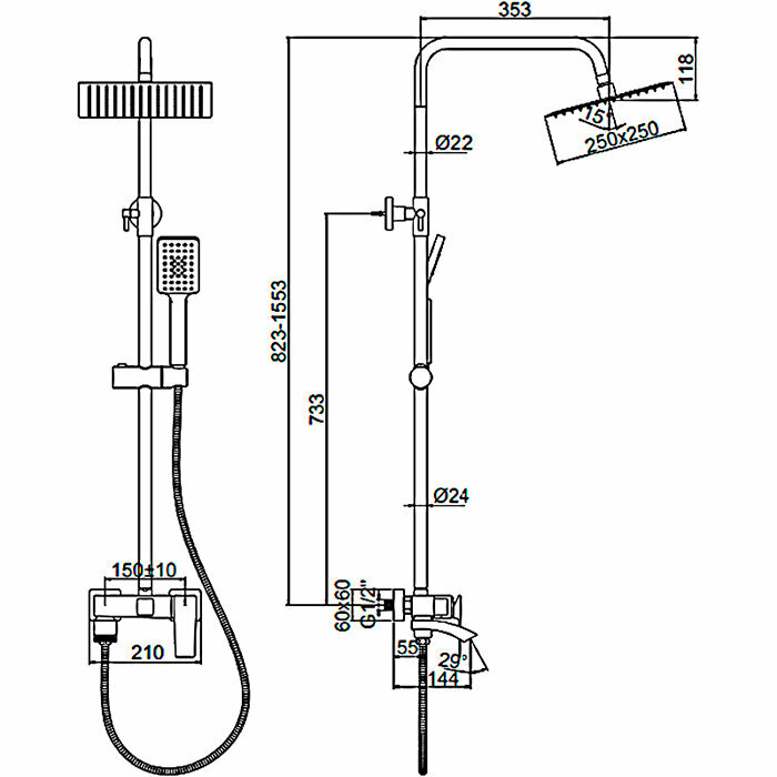 Душевая стойка со смесителем Ledeme L2480B интересное: