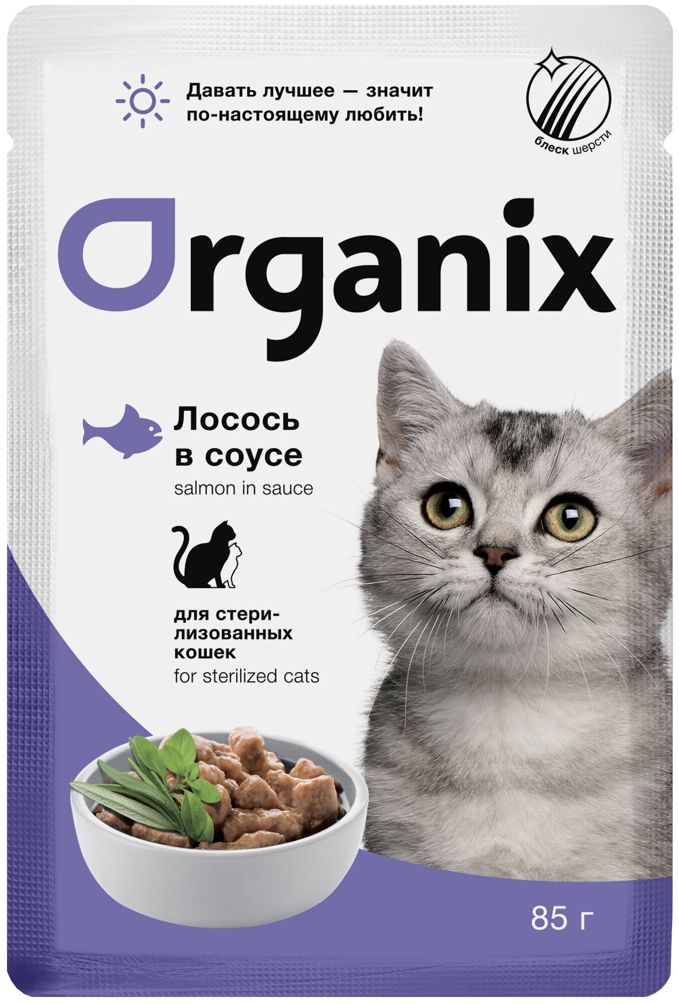 Organix Паучи для стерилизованных кошек "Идеальная кожа и шерсть": лосось в соусе 0.085кг 1шт. 0.085 кг