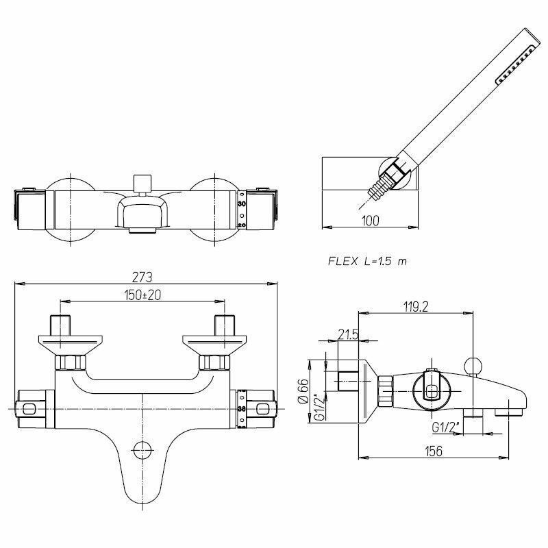 Смеситель для ванны Paini Arena с термостатом и душевым комплектом, хром