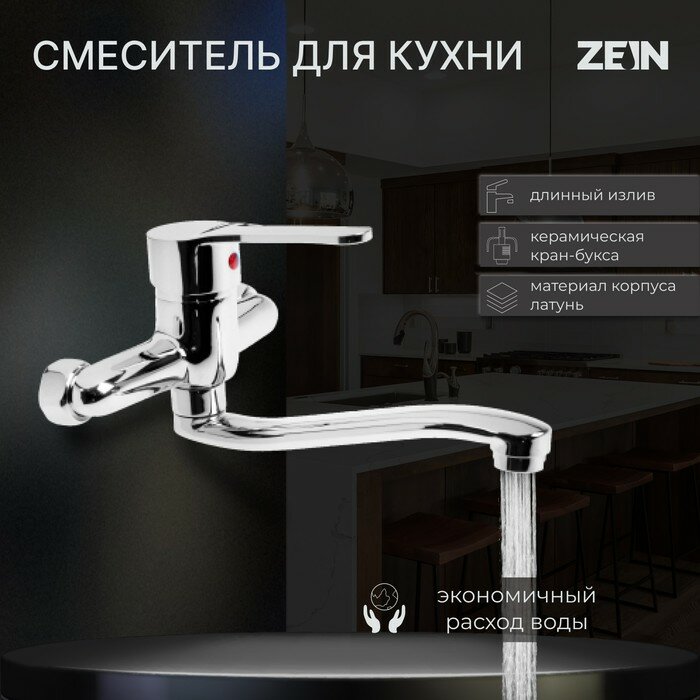 Смеситель для кухни ZEIN Z67350152, настенный, картридж керамика 35 мм, хром (арт. 5118185)