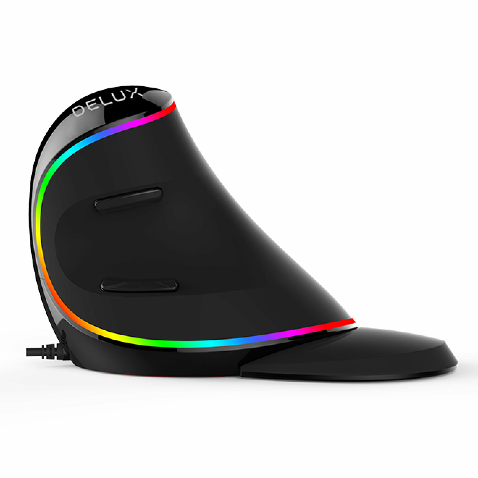 Вертикальная мышь проводная Delux M618 PLUS RGB, черный