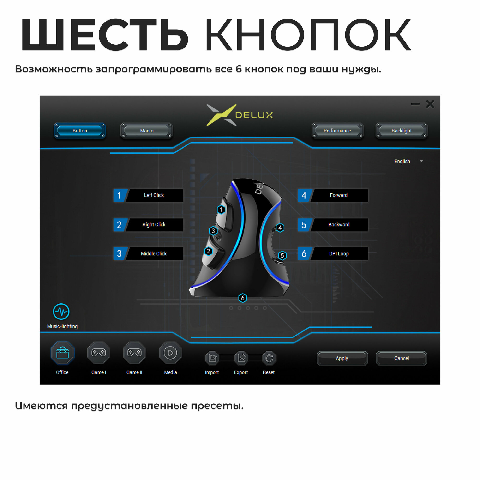 Мышь вертикальная Delux KM-M618 Plus RGB, черный интересное: