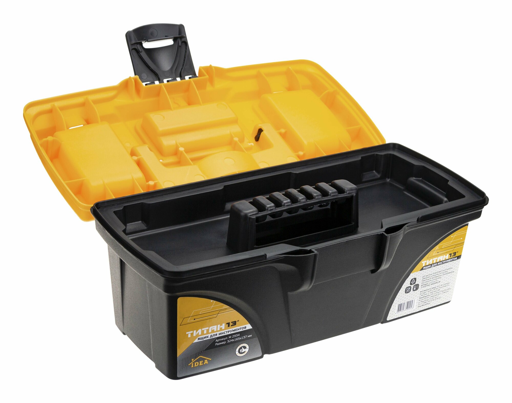 Купить Ящик для инструментов титан 13" (с секциями) черный с желтым IDEA (М-Пластика) М2934