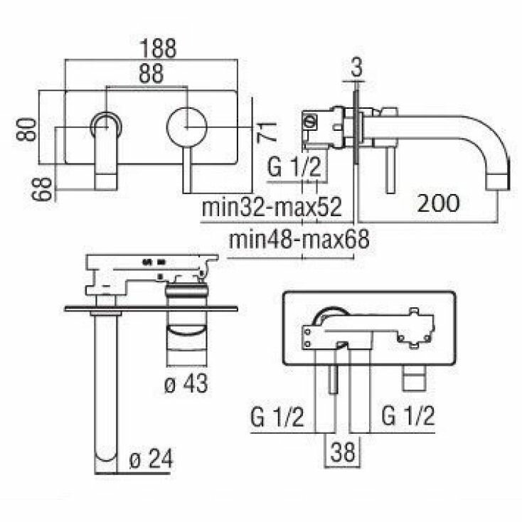 Смеситель для раковины Nobili Live LV00198/1CR хром, настенный, внешняя часть