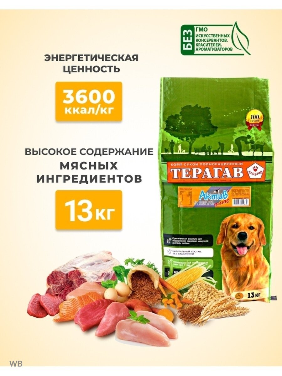 Корм сухой для взрослых собак терагав Актив плюс интересное: