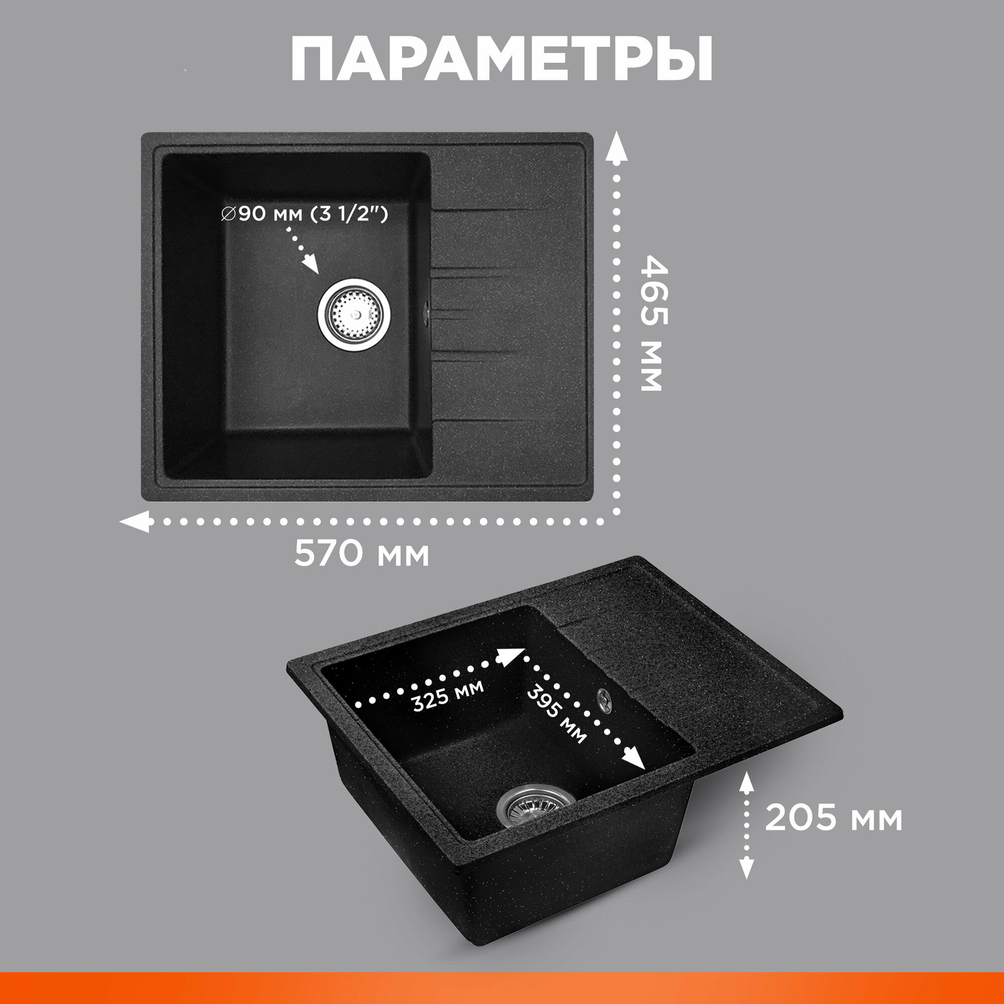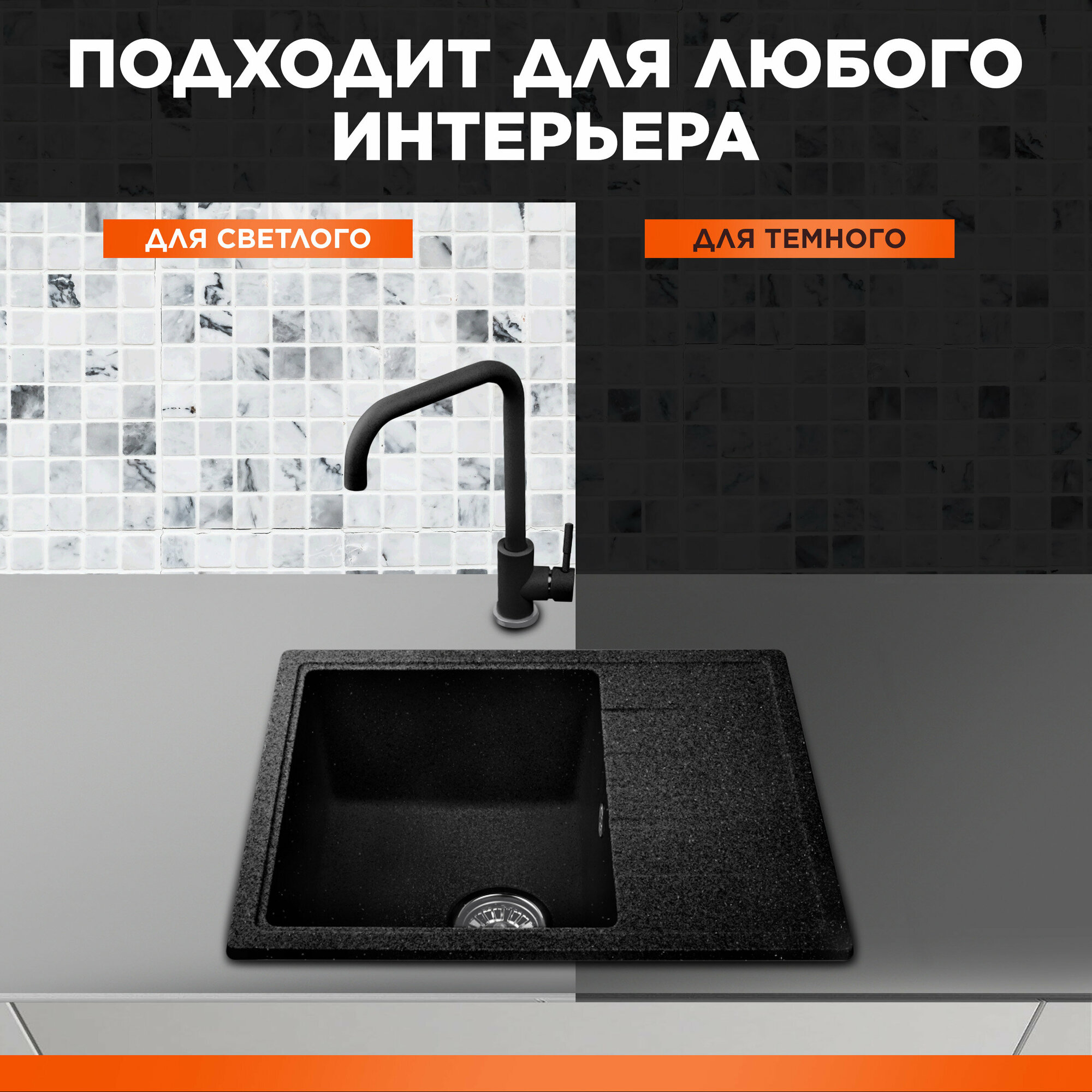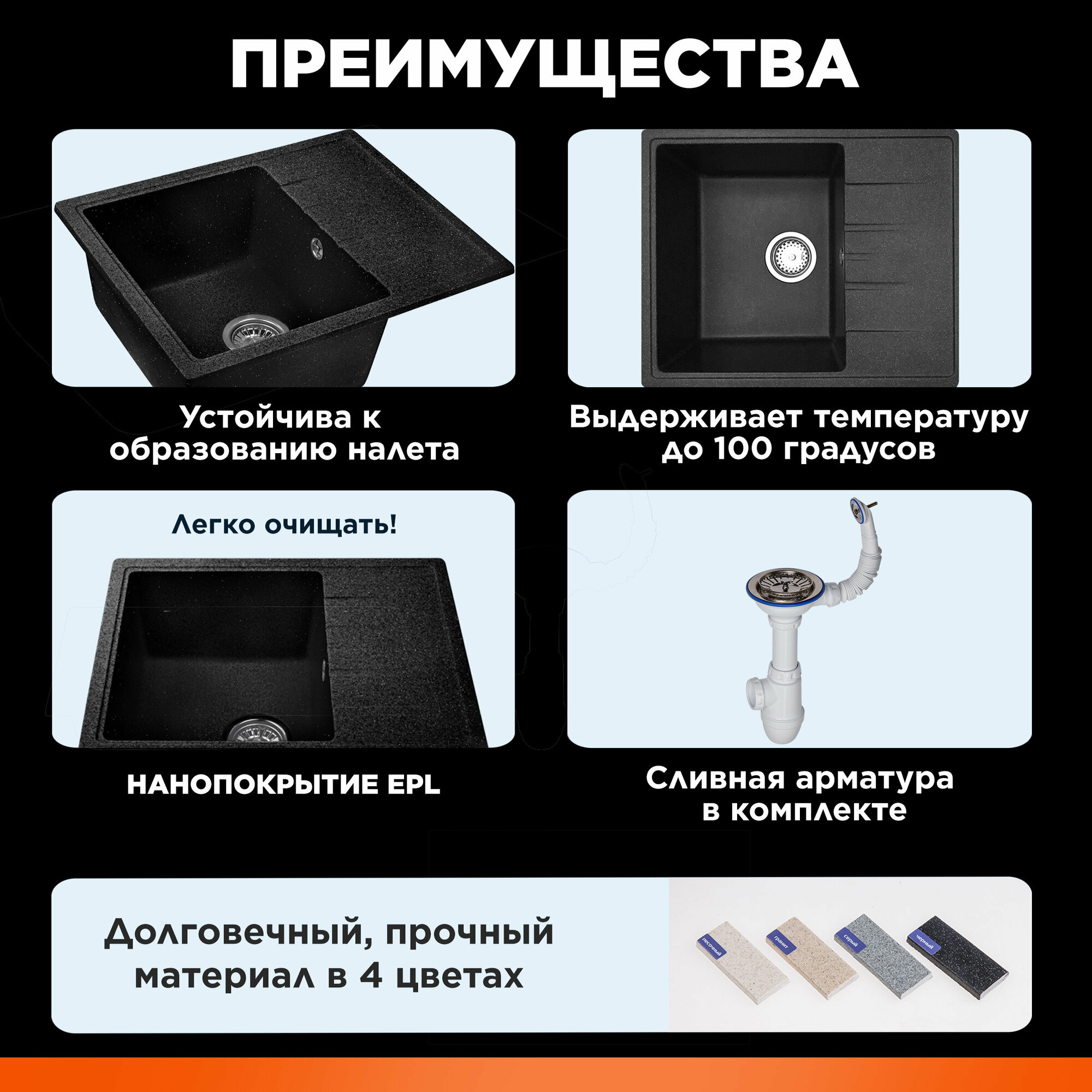 Мойка для кухни каменная AV ENGINEERING Unit 55х50, с сифоном (AVE550500BKA)