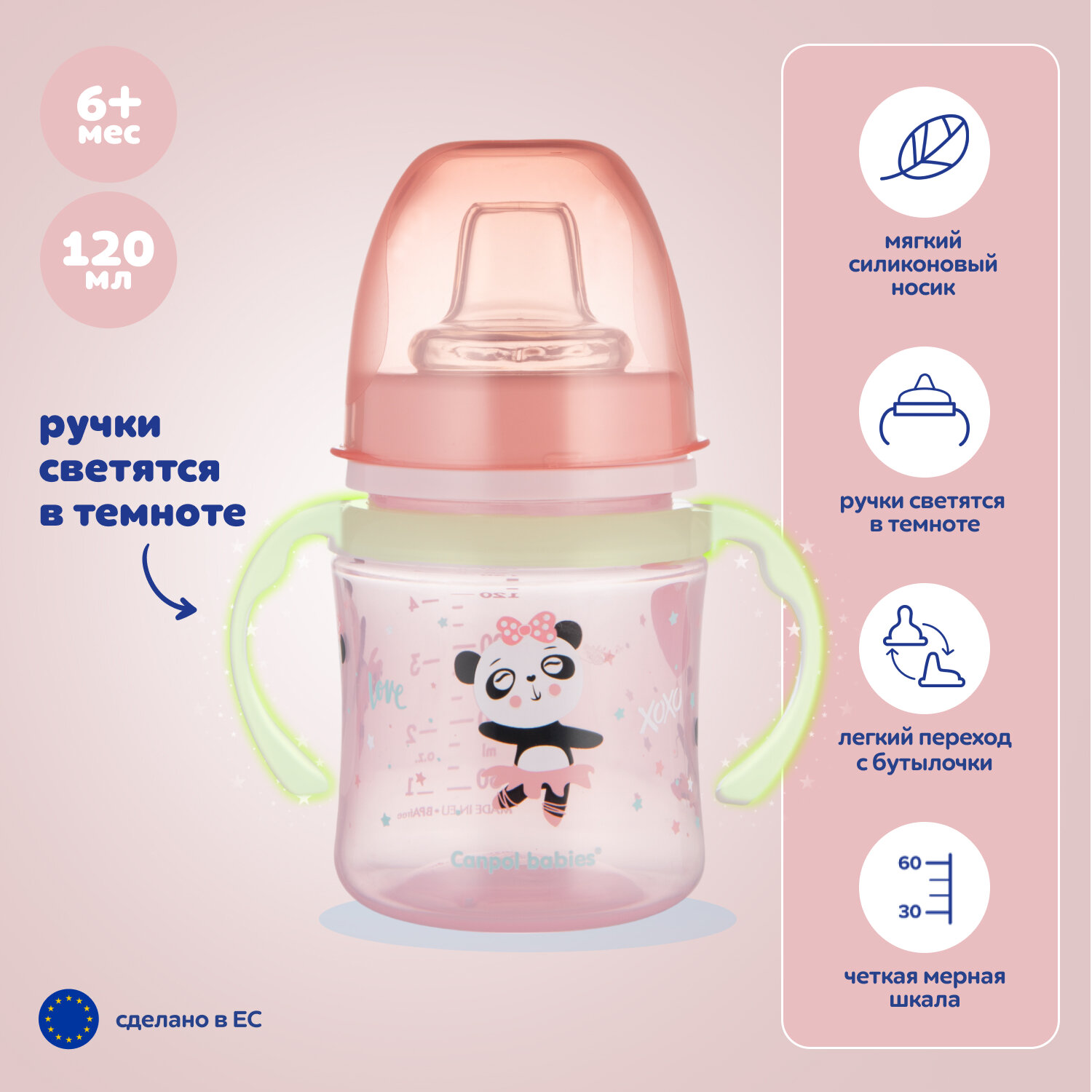 Поильник с носиком Canpol babies Exotic Animals обучающий, 120 мл, розовый, от 6 мес интересное: