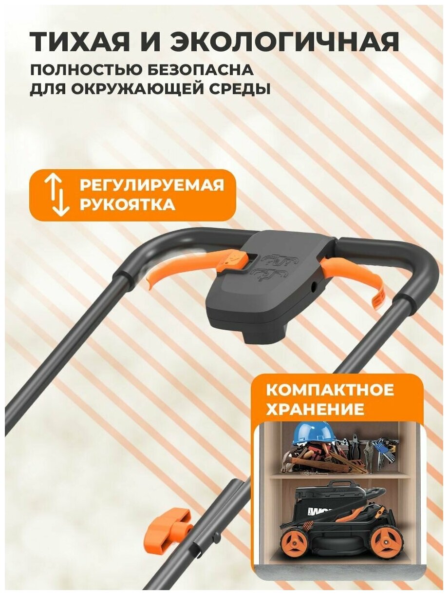Газонокосилка аккумуляторная WORX WG779E.1, 34см, несамоходная, 4Ач
