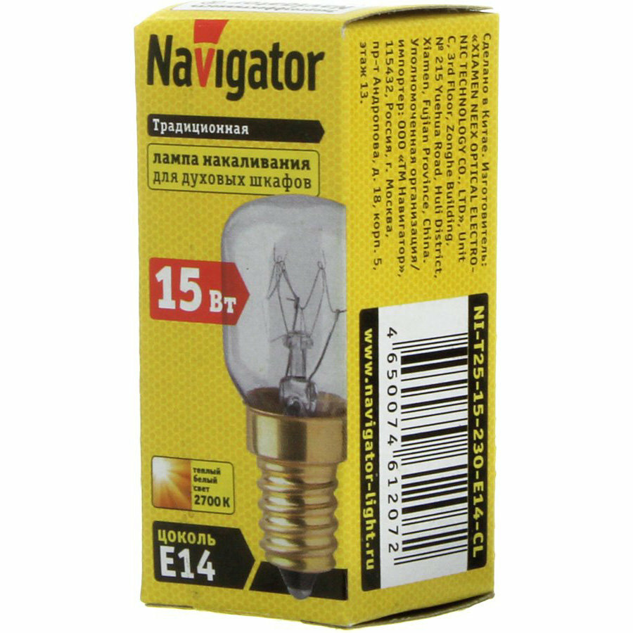 Лампа накаливания Navigator 61 207 NI-T25 для духовых шкафов, 15 Вт, Е14, 1 шт.