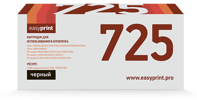 Картридж EasyPrint LC-725 U для Canon LBP3010/6000/HP LJ P1005/P1505/P1102/M1120/M1212/M1522 (схожий с Canon 725)