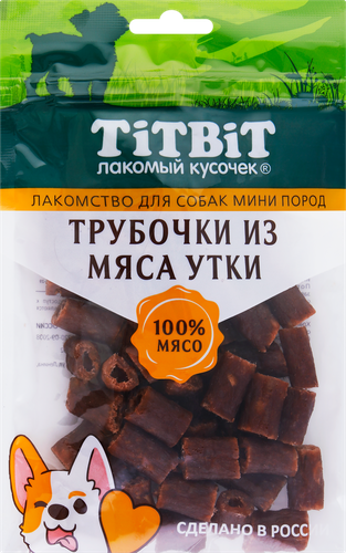 ТитБит трубочки из мяса утки лакомство для собак мини пород 100г