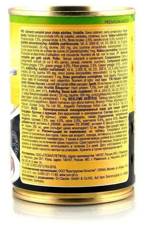 Д-р Клаудер, консервы, для кошек, 415г., курица в соусе, Россия, 1 шт.