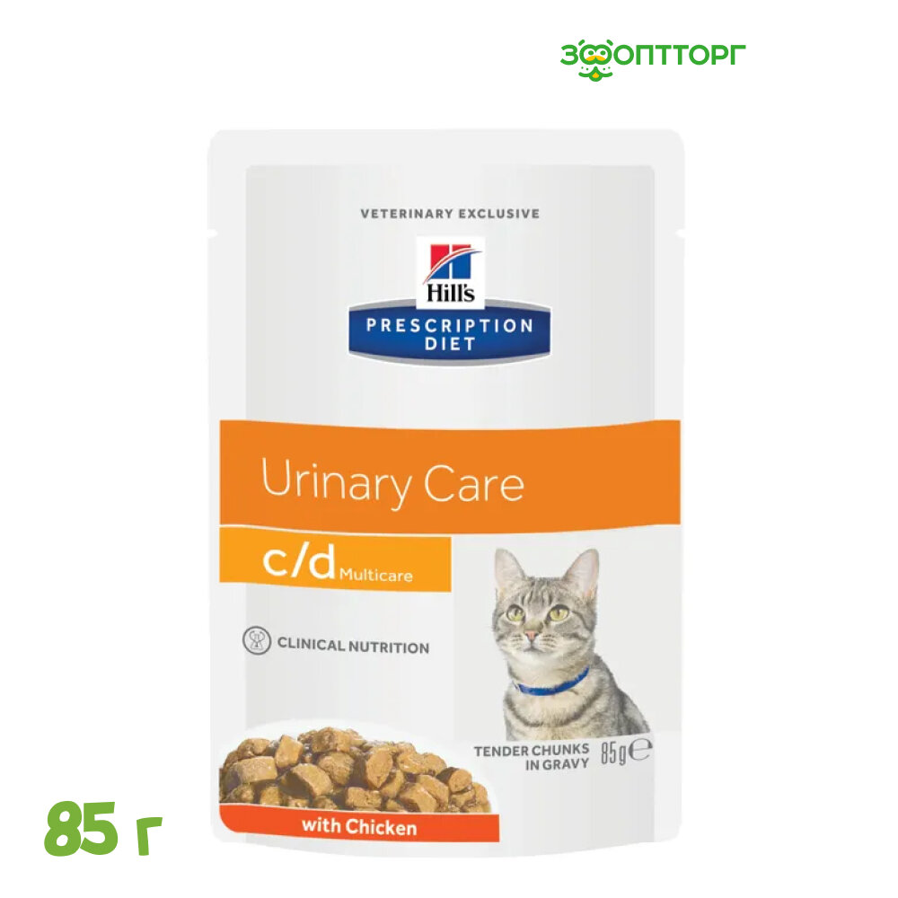 Купить корм для кошек Hill's Prescription Diet c/d Multicare, для профилактики МКБ, с курицей 85 г (кусочки в соусе)
