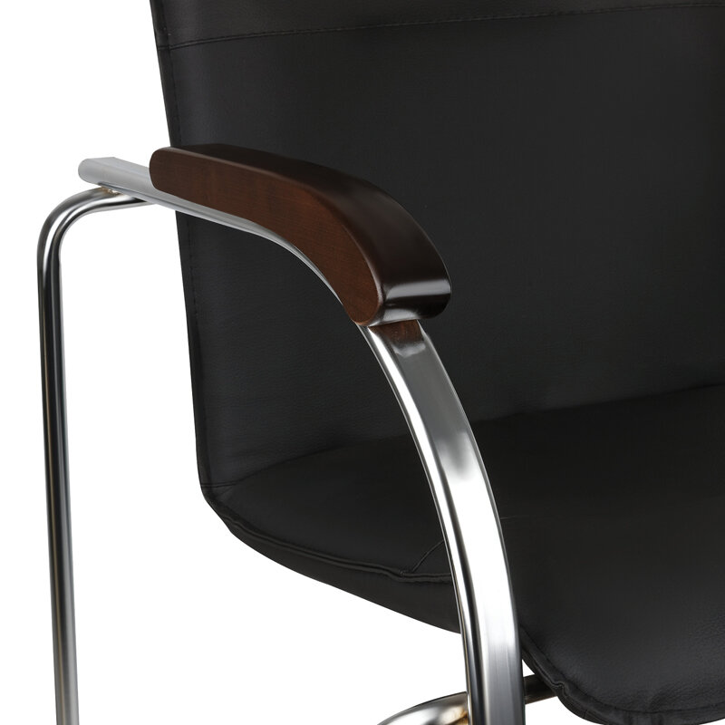 Стул Helmi HL-F03 "Самба", каркас металл алюм., экокожа, черный, орех BOX1