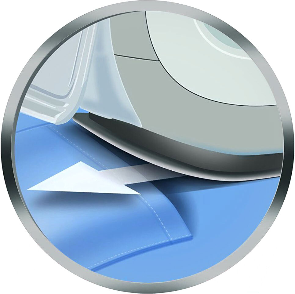 | Плюсы: | Прекрасное скольжение подошвы по любому типу ткани. Не нужно переключать режим во время глажки разных тканей. Очень мощный пар. |
