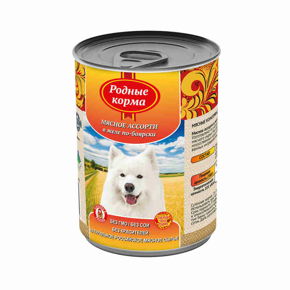 Влажный корм родные корма консервы для собак Мясное Ассорти в Желе По Боярски 410 гр
