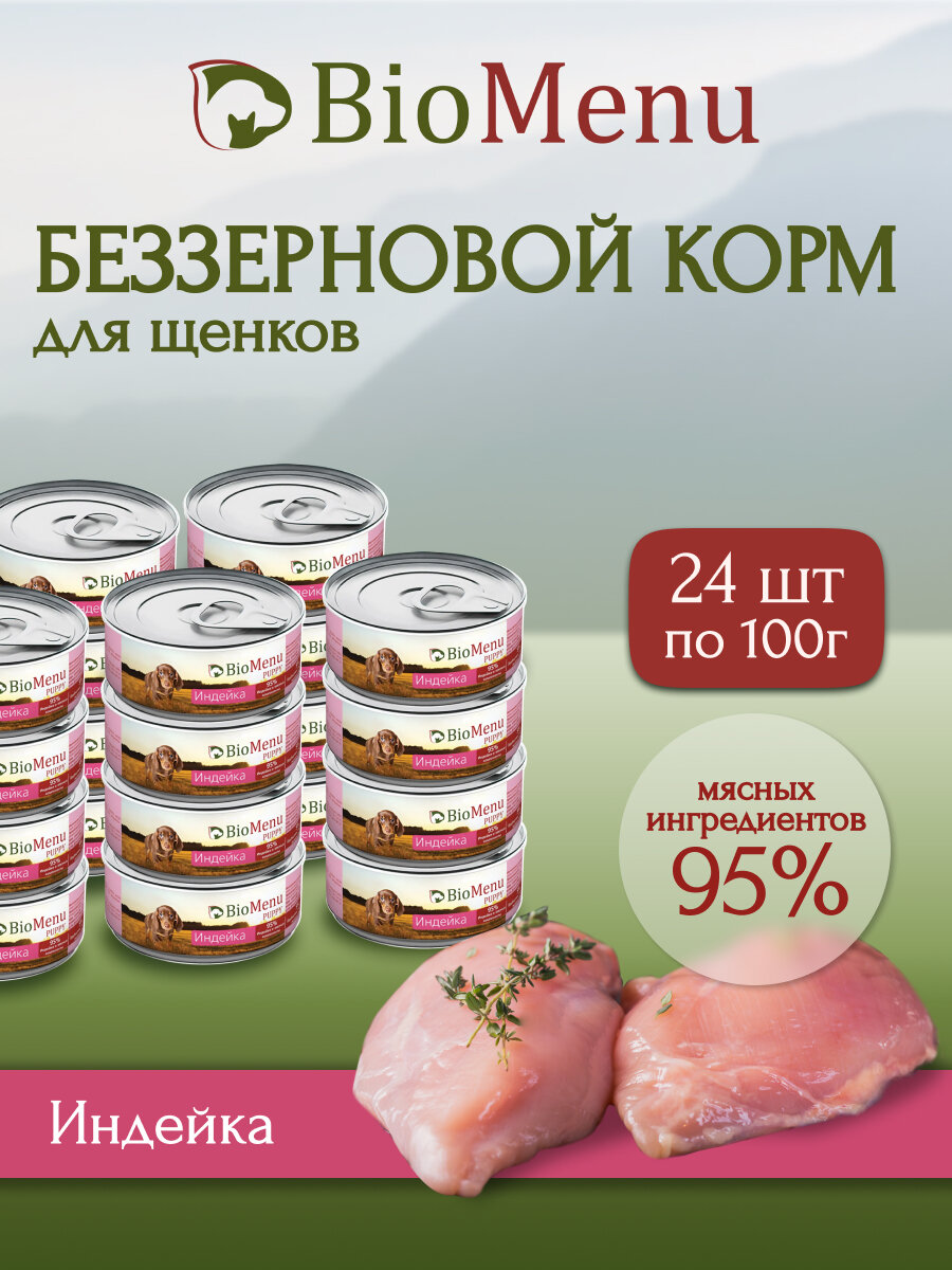BioMenu PUPPY Консервы д/щенков Индейка 95%-мясо 100гр x 24 шт