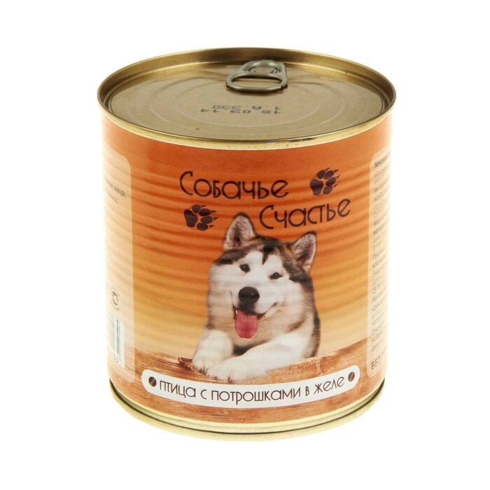 Консервированный корм для собак, Собачье Счастье, птица с потрошками в желе, 750 г, 1 шт.