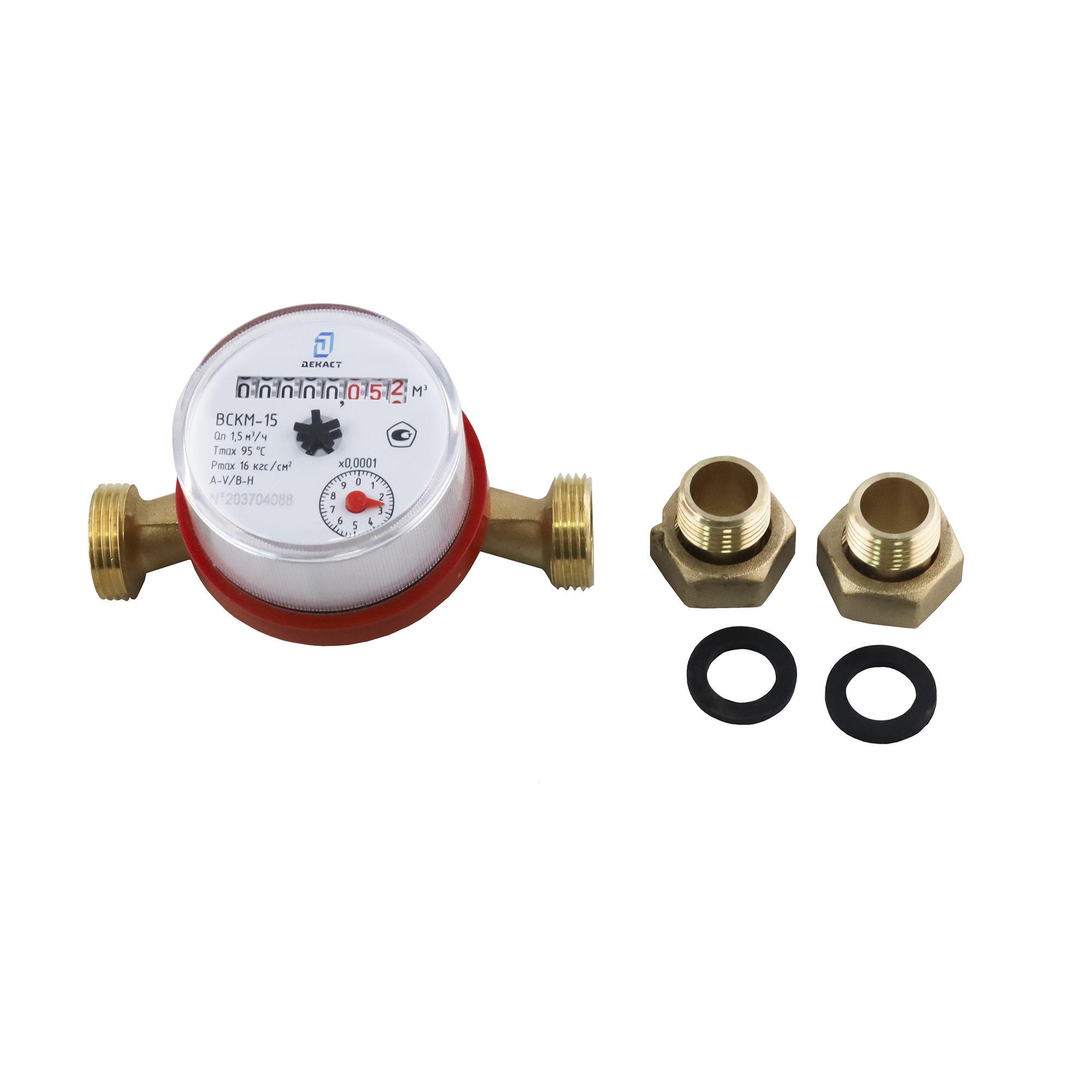 Счетчик воды "Декаст ВСКМ-15" с комплектом монтажных частей