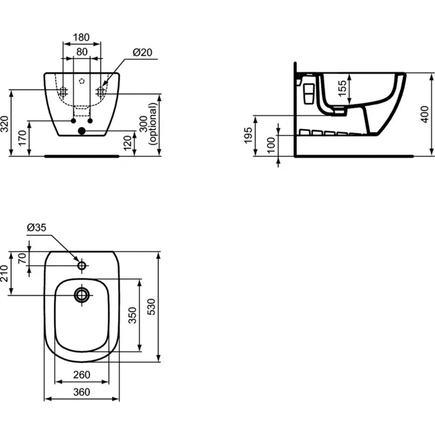 | Дополнительная информация | TESI Подвесное биде, с отверстием под смеситель, с отверстием перелива, с крепежом TT0299598 (для полностью скрытого монтажа) |