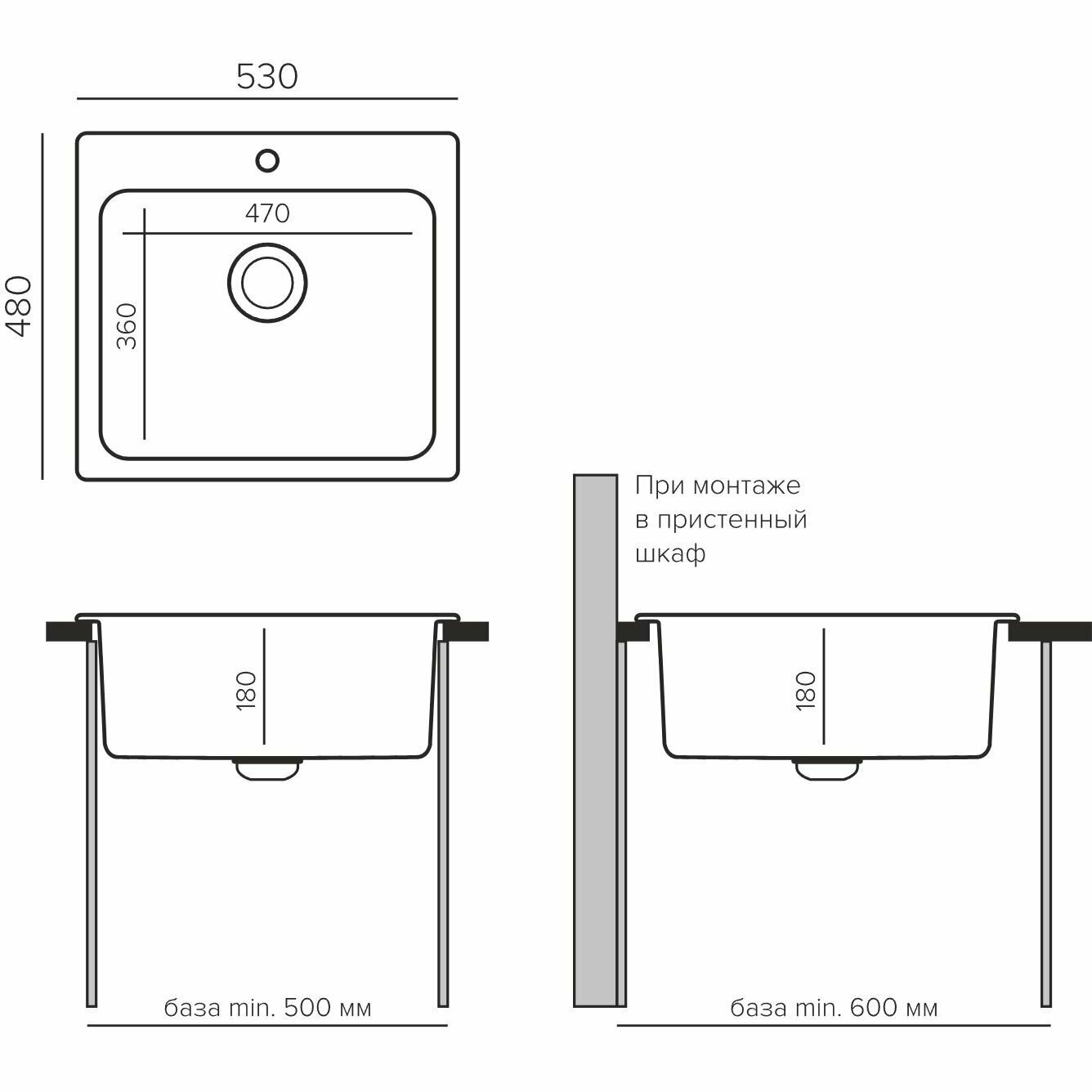 Кухонная каменная мойка 53x48 QuartzBond BOND-530 серый