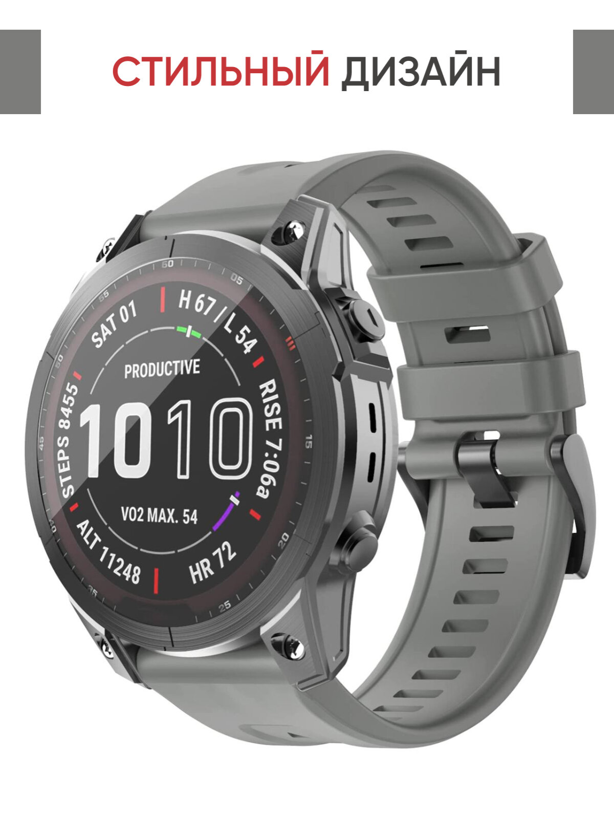СохранитьСиликоновый ремешок на часы Garmin Fenix 7X, 6X, 5X, 3, Garmin Enduro, Tactix Delta, быстросъемный QuickFit 26 мм с гравировкой премиум качество серый интересное: