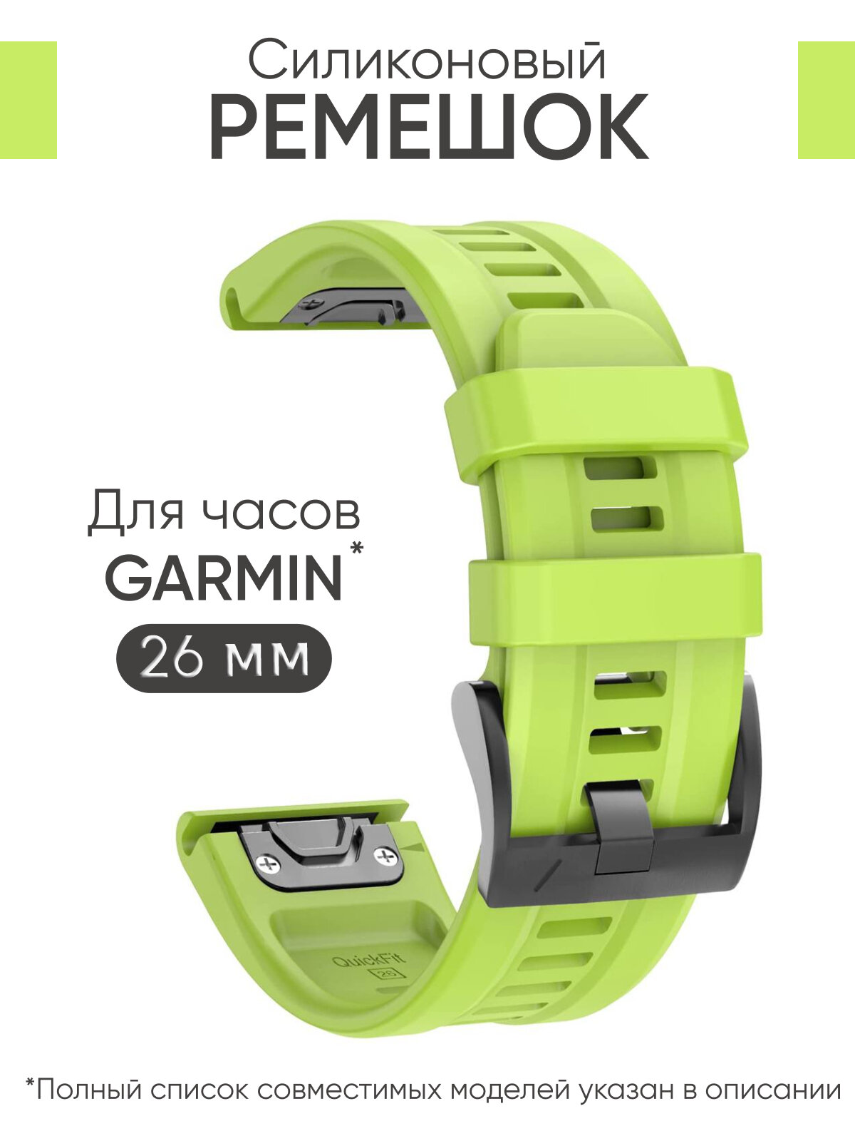 СохранитьСиликоновый ремешок на часы Garmin Fenix 7X, 6X, 5X, 3, Garmin Enduro, Tactix Delta, быстросъемный QuickFit 26 мм с гравировкой премиум качество салатовый интересное:
