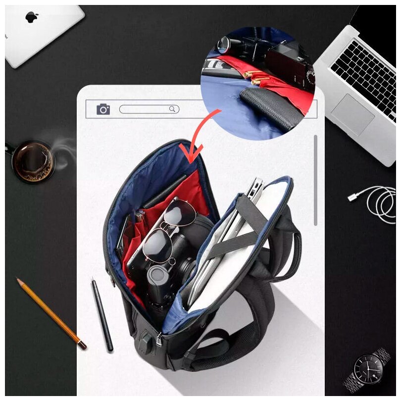 Рюкзак мужской/женский городской Bopai Business 12л для ноутбука 15.6" водонепроницаемый, с USB зарядкой, черный