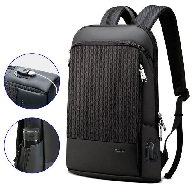 Рюкзак городской дорожный Bopai Business небольшой 12л для ноутбука 15.6", тканевый, влагостойкий, молодежный, с USB портом, черный