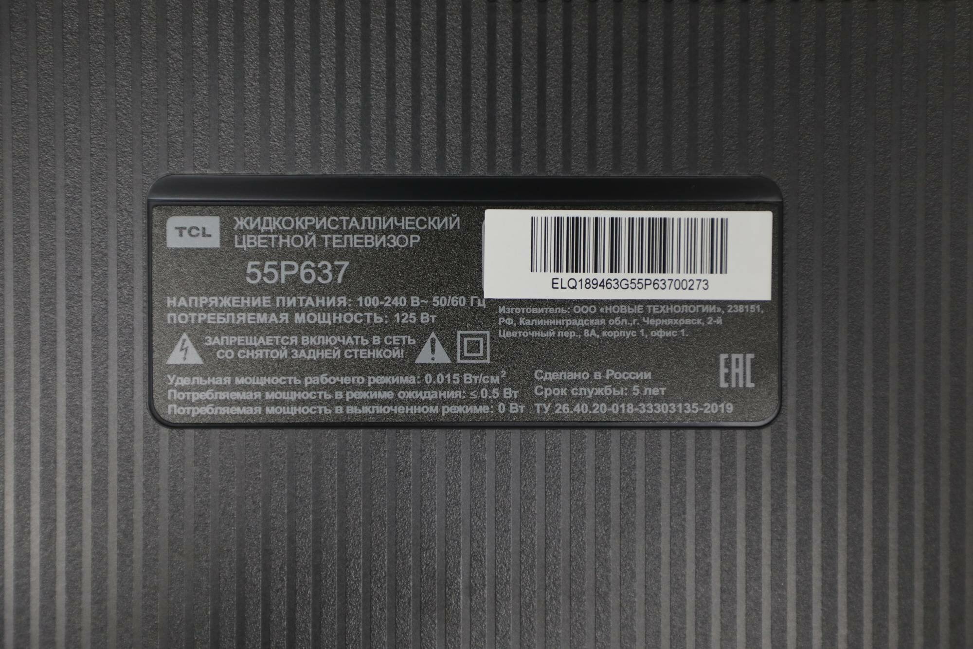 55" Телевизор TCL 55P637 2022 LED, HDR, чёрный