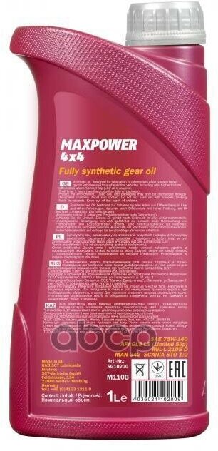 Масло Трансмиссионное Maxpower Gl-5 75w140 Синтетическое 1 Л MANNOL арт. MN81021